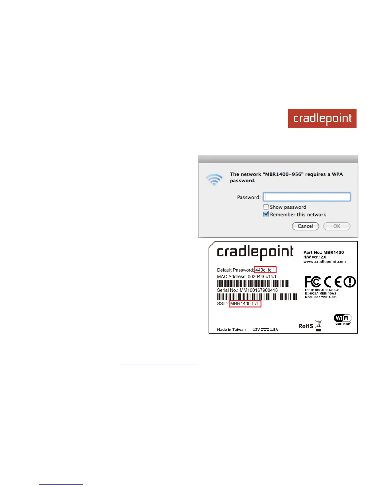 network). The SSID can be found on the product label in the form MBR1400-