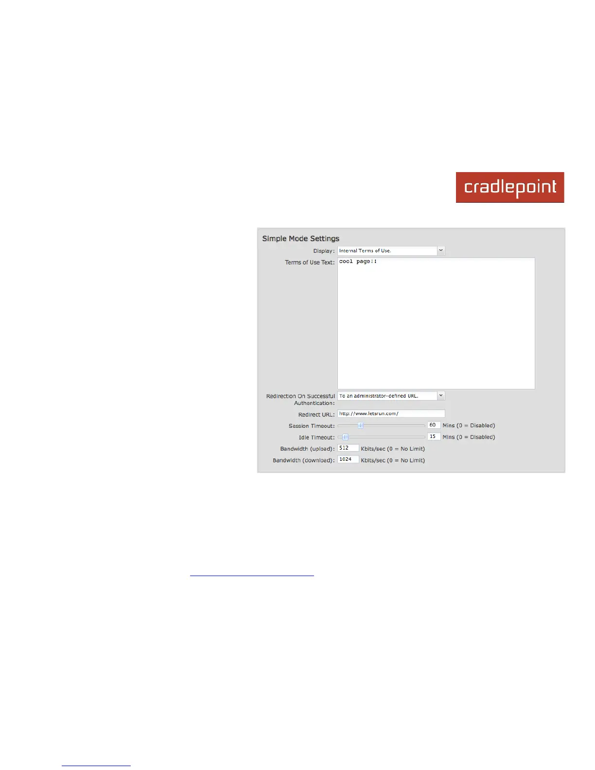 Bandwidth (download): (Default: 1024 Kbits/sec.) The data rate limit for users downloading data through the hotspot.