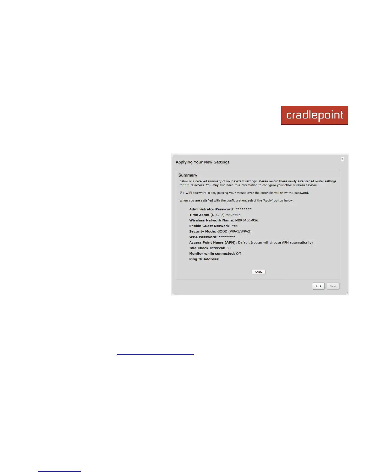 10) Review the details and record your wireless network name, administrative password, and WPA password (or WEP