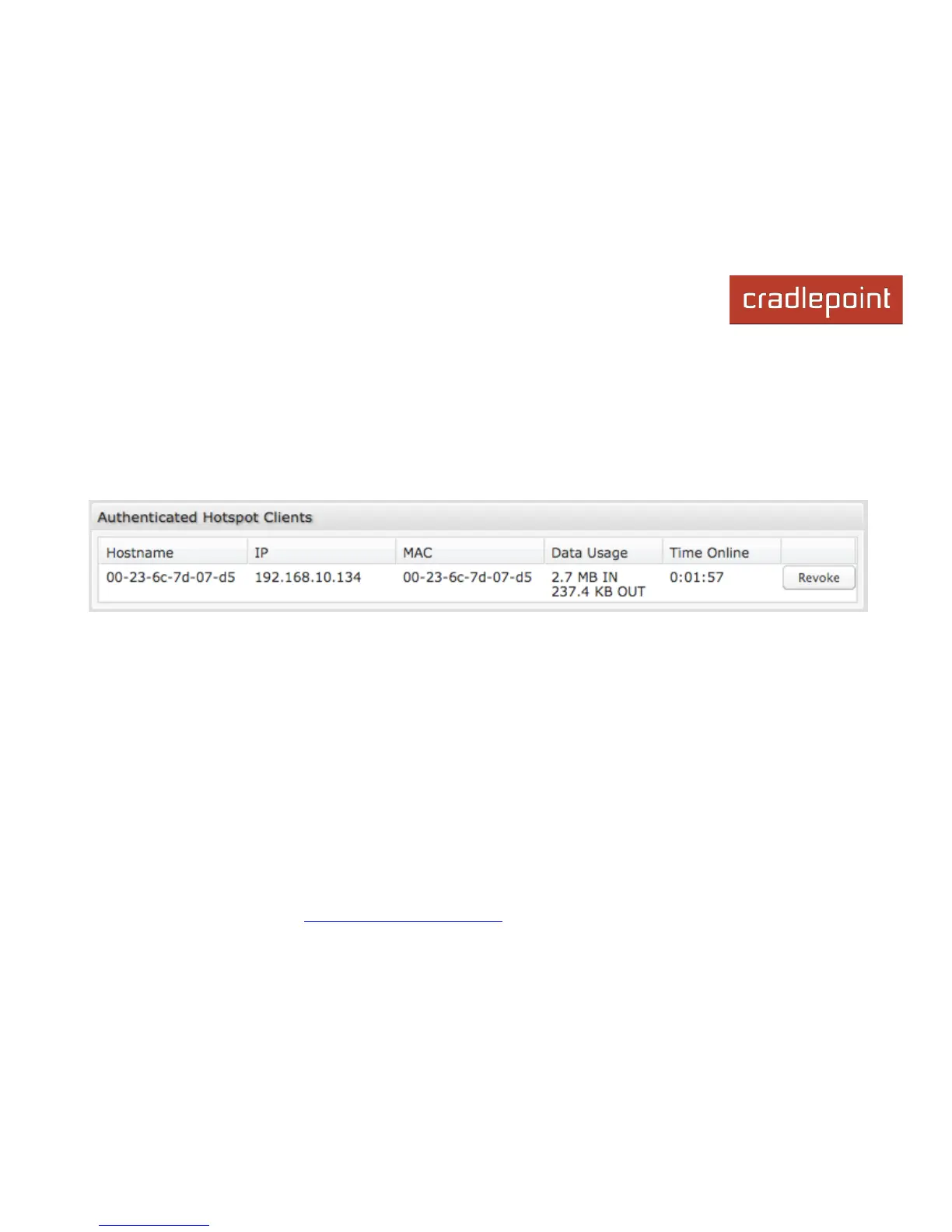 You may revoke a client's access to the Internet by clicking the 'Revoke' button.