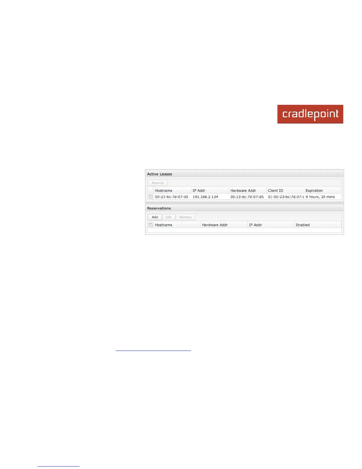 Reservations: This is a list of devices with
