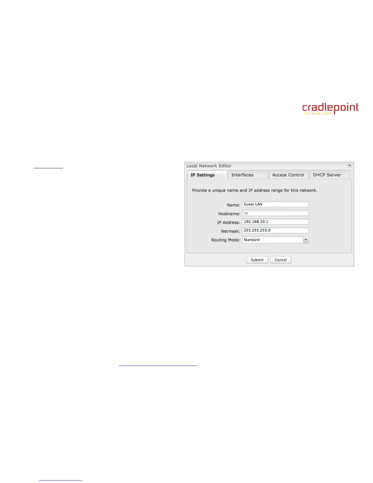 Hostname: [Default: cp (for CradlePoint)] The hostname