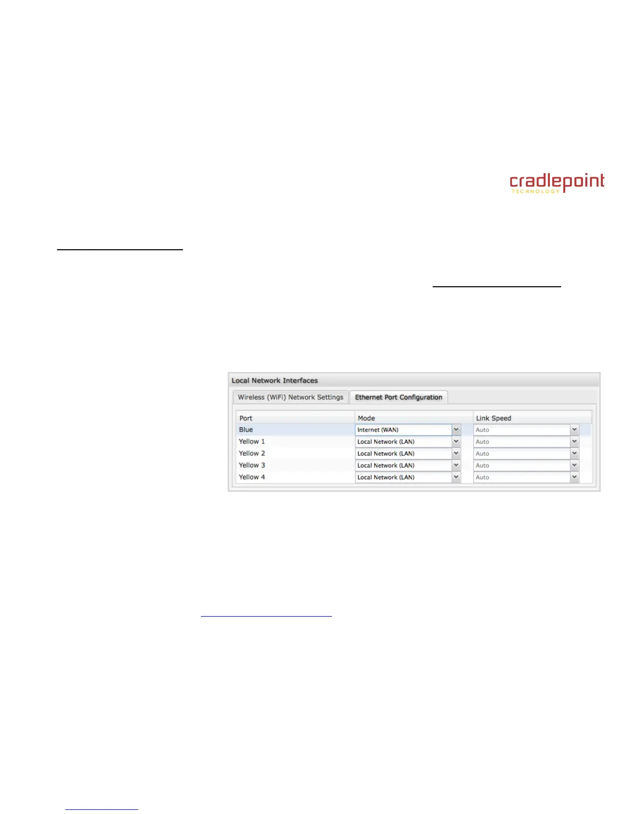 Ethernet Port Configuration provides controls for your router’s Ethernet ports. There are five total ports: one blue port and