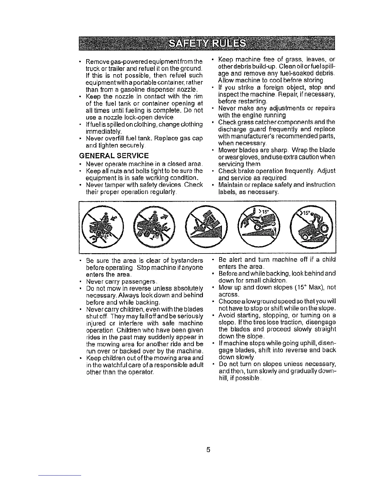• Do not mow in reverse unless absolutely