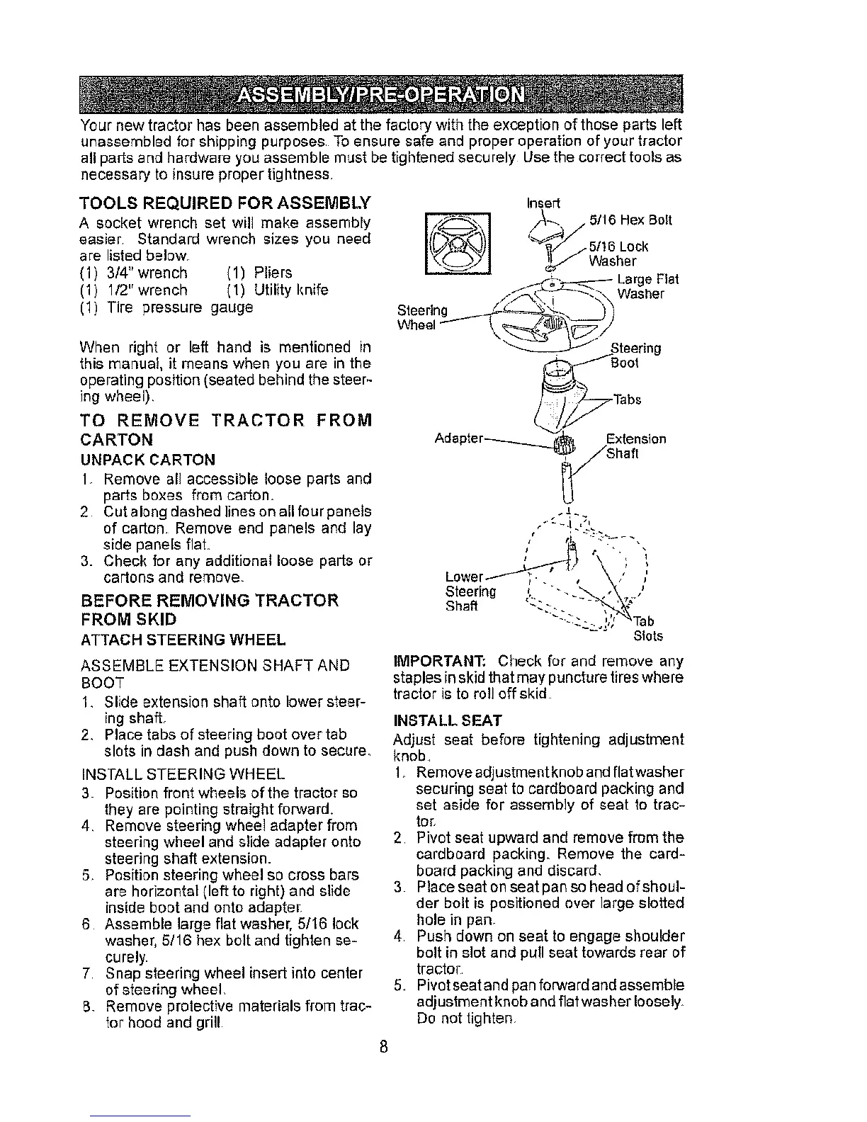 unassembled for shipping purposes,, To ensure safe and proper operation of your tractor