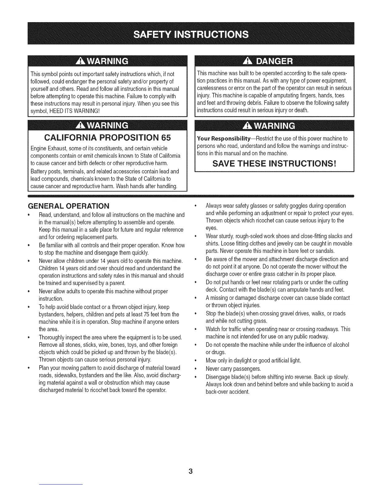 Your Responsibility--Restrictthe useof thispowermachineto