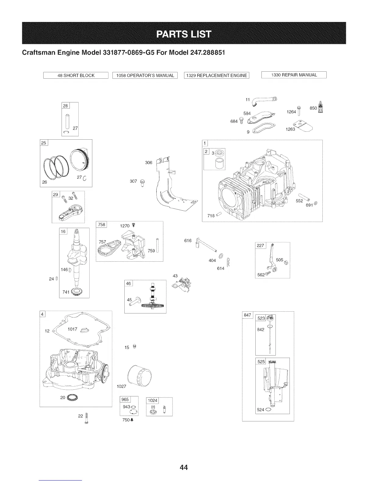 Craftsman Engine Model 331877=0869=G5 For Model 247.288851