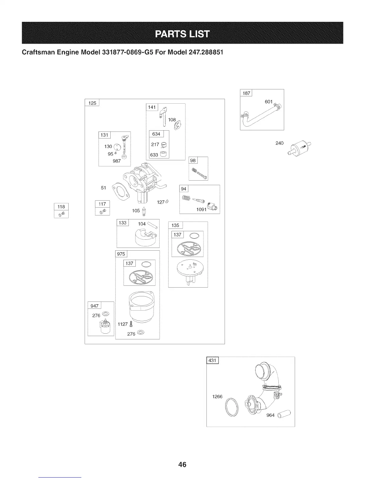 Craftsman Engine Model 331877-0869-G5 For Model 247.288851