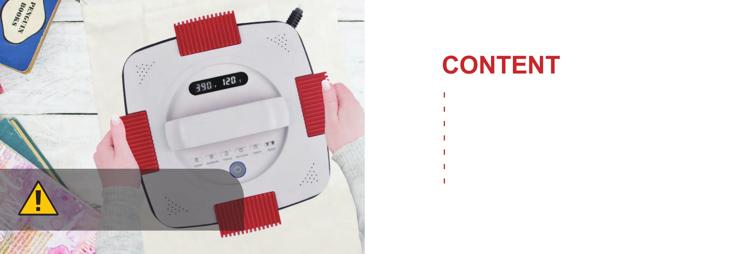 4. DO NOT immerse the press in water or other liquids.