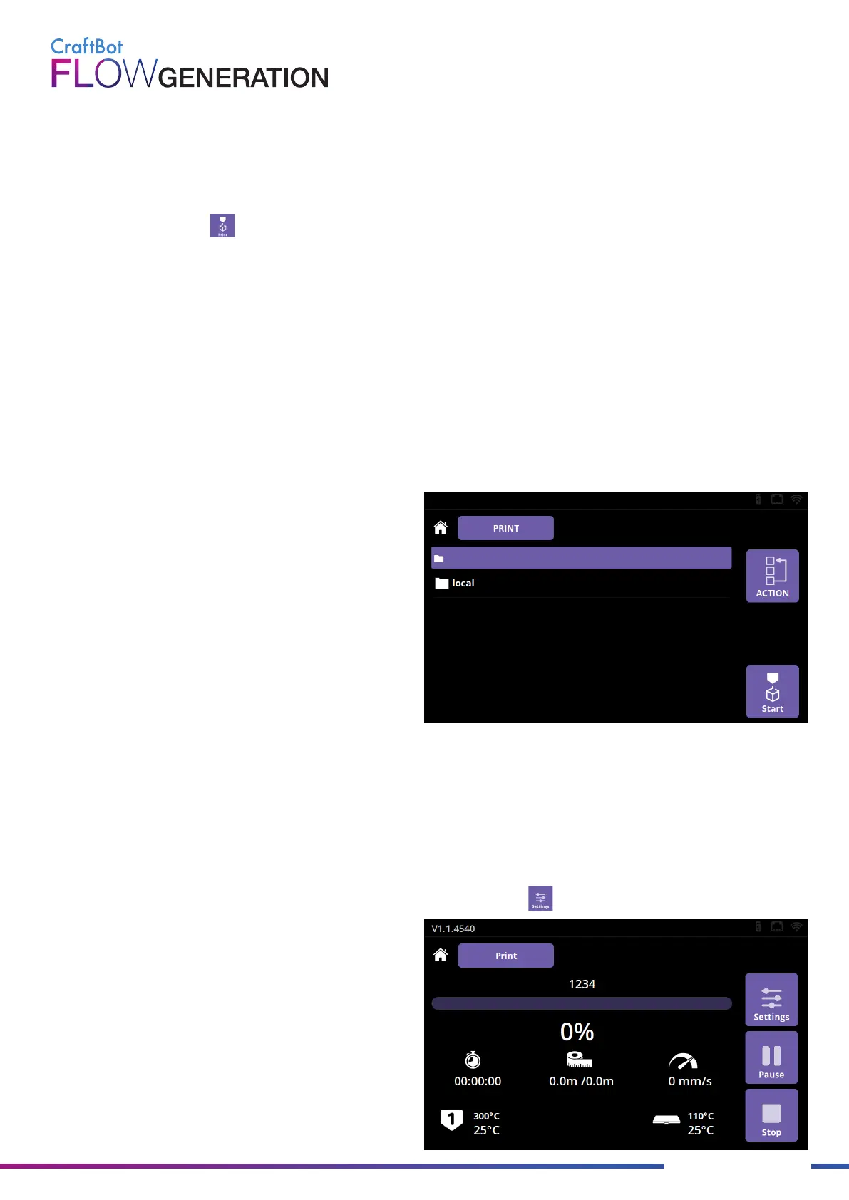 • The machine warms the print head and the build plate to the values specified in gcode.