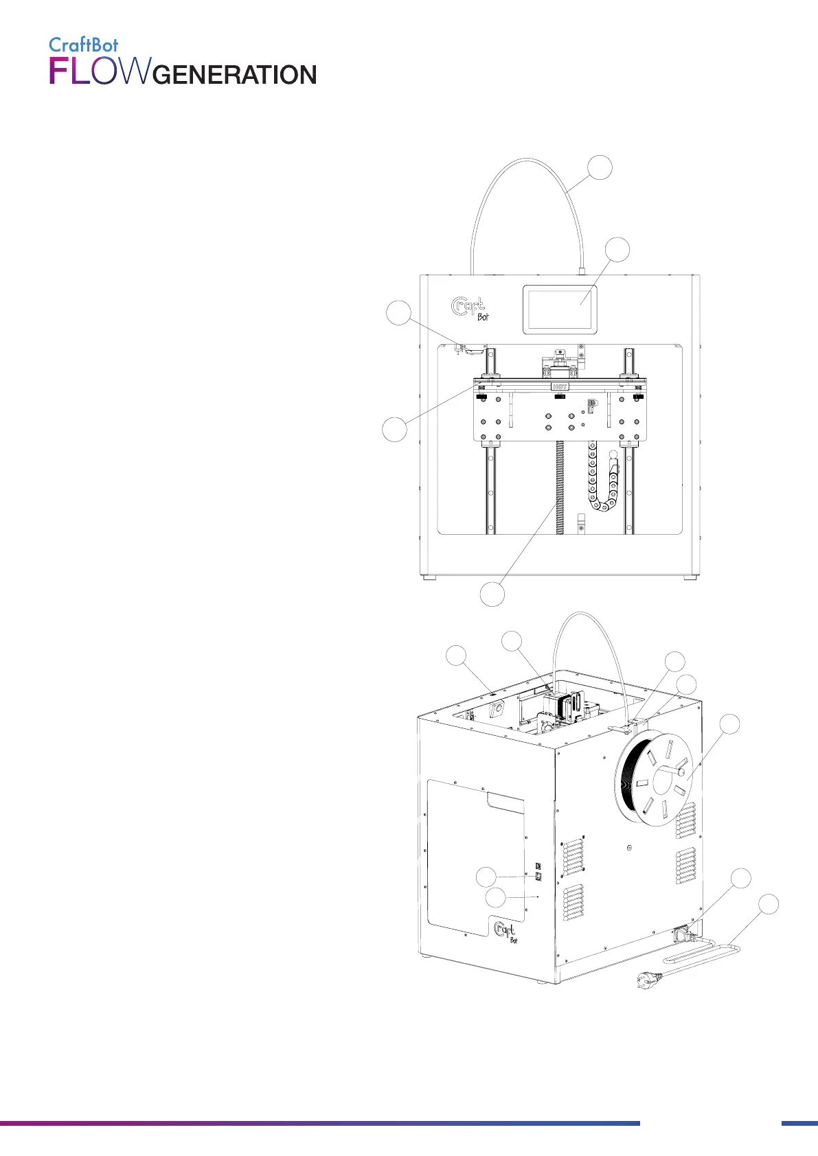 The model displayed is the CraftBot Flow printer. The difference between the two models is the frame height.