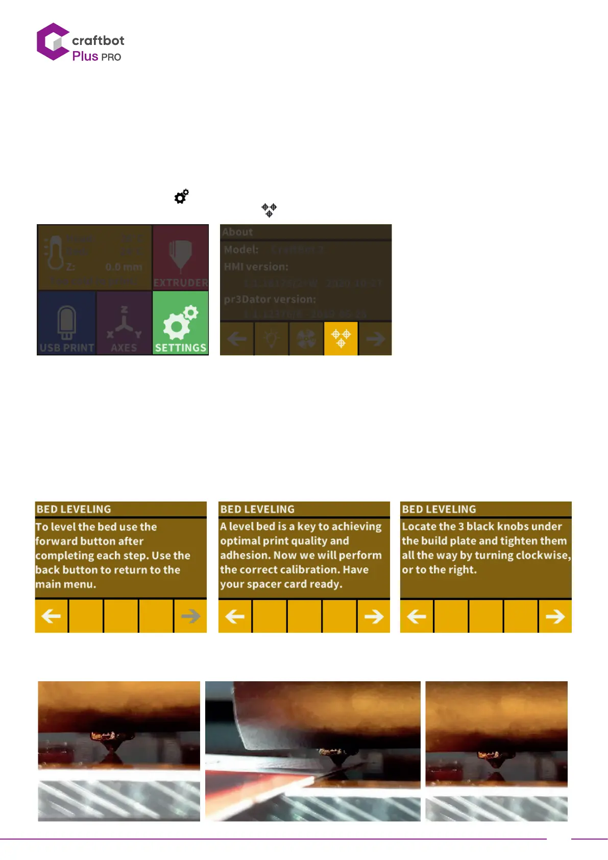 CraBot has a leveling procedure which ensures that the extruder and the heated build plate are at optimal distance