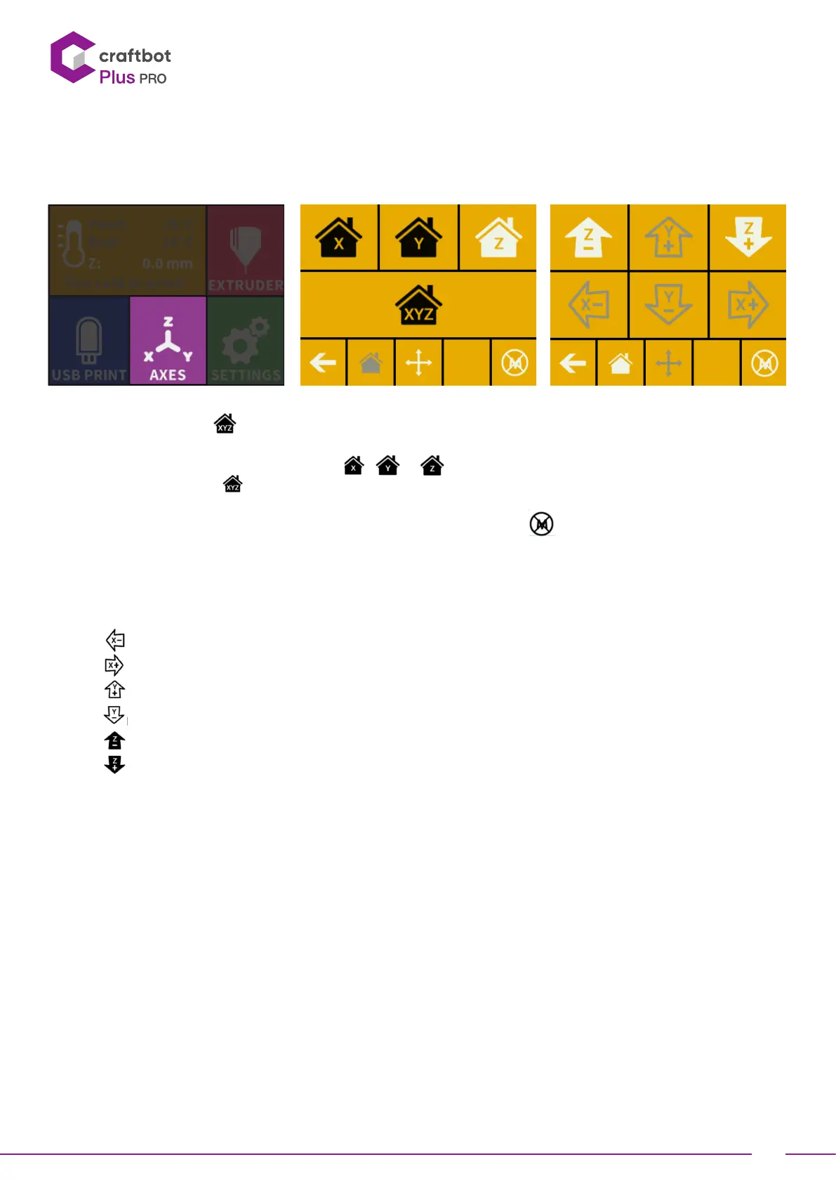 • The directional buon to the right of the “home” buon can be used to move along the X, Y or Z axis using the