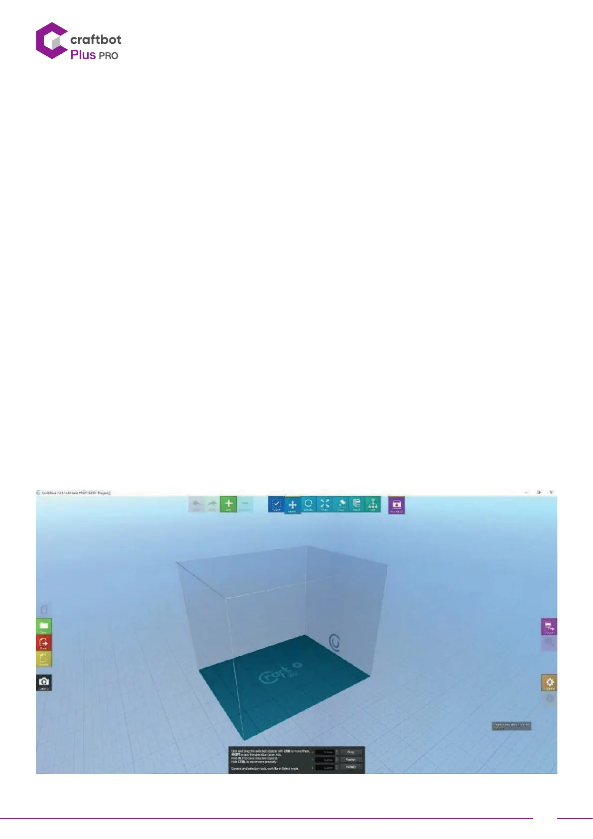 Once CraWare has been opened up, you will see a virtual build platform. This will represent your CraBot’s real build