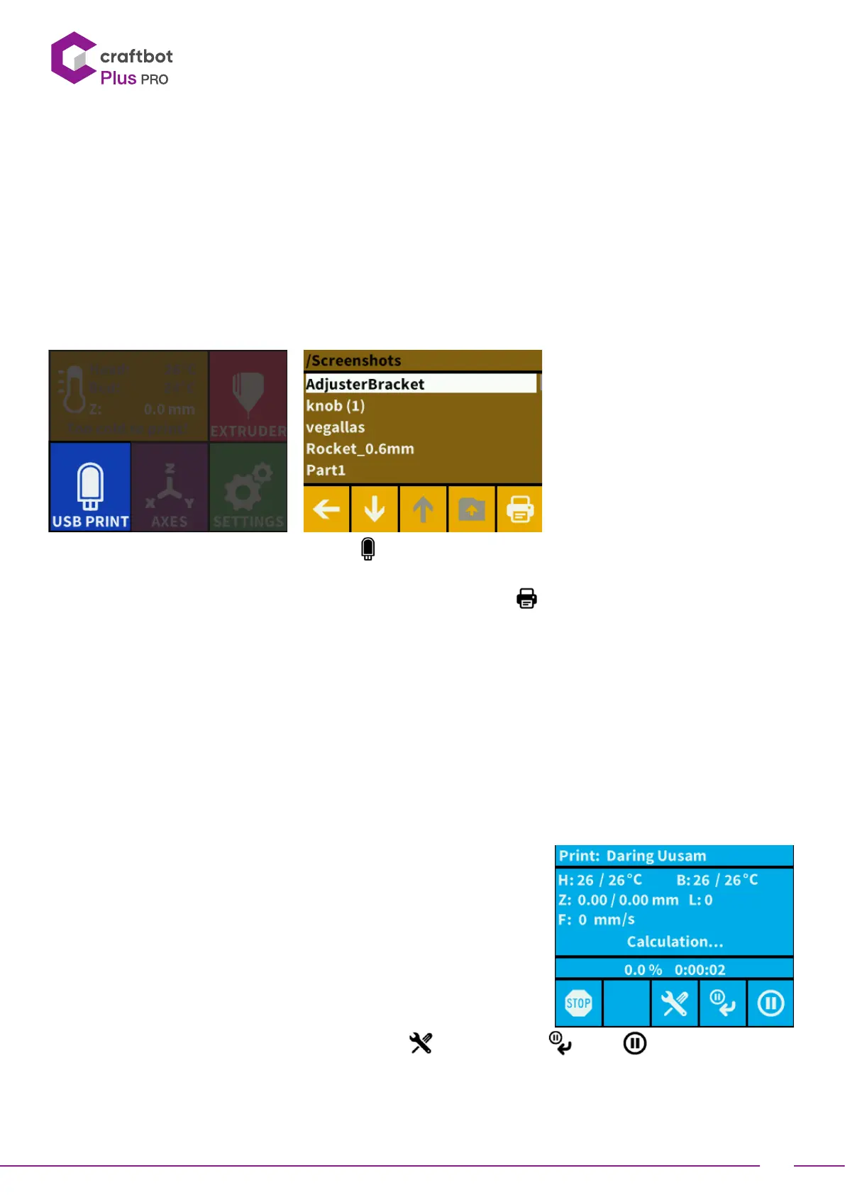 • Save the printing command gcode file created by the CraWare slicer program onto USB flash drive. Alternatively,