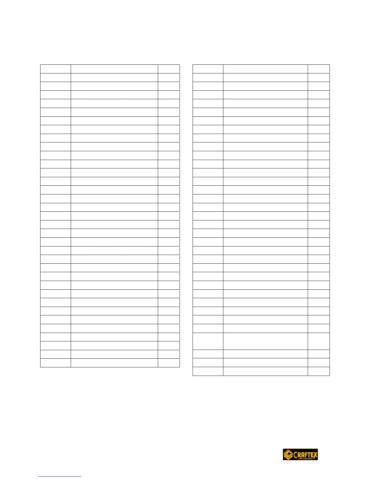 Craftex CT015N - Parts List