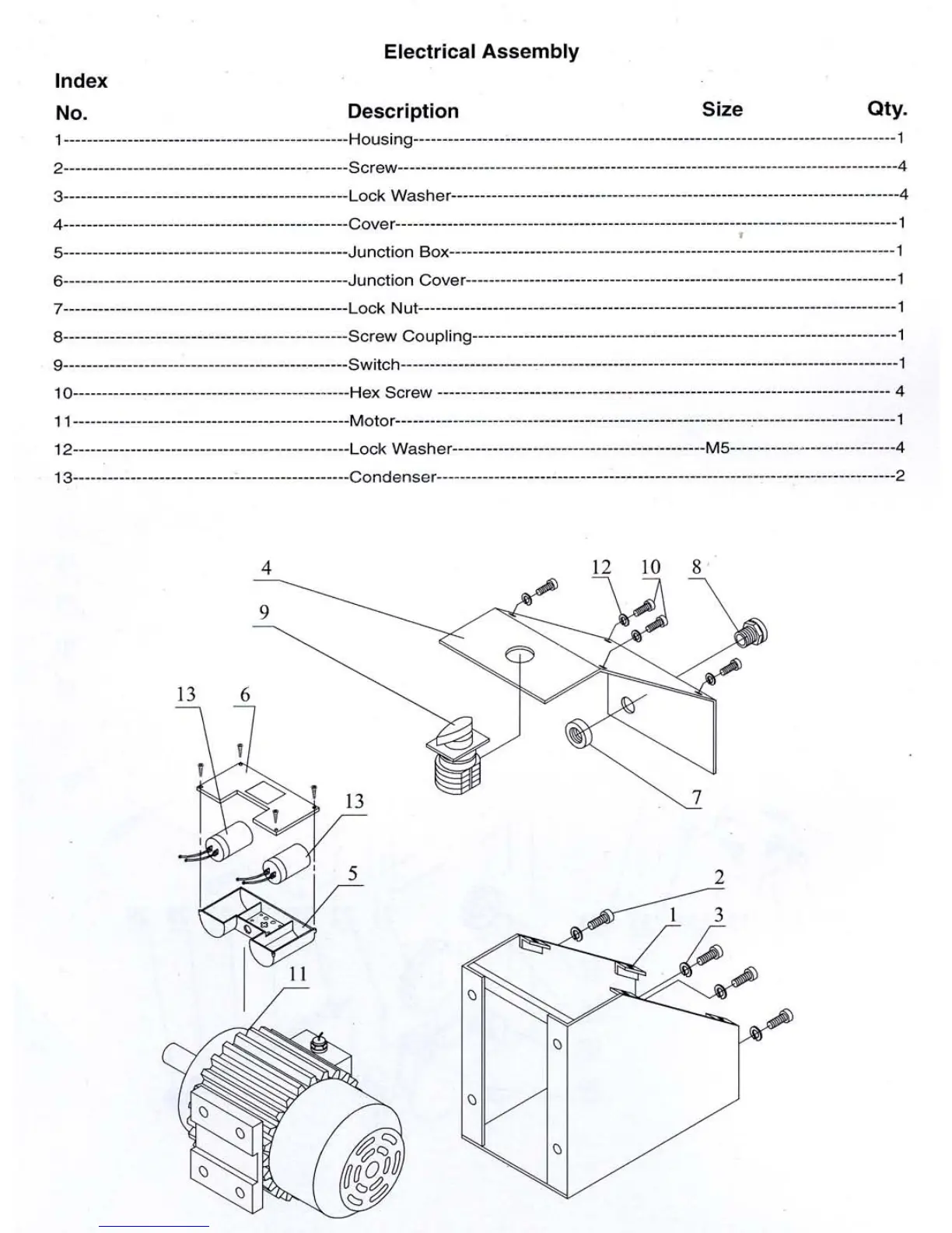 Craftex CT039 - Electrical Assembly Diagram; Exploded View of Electrical System Components