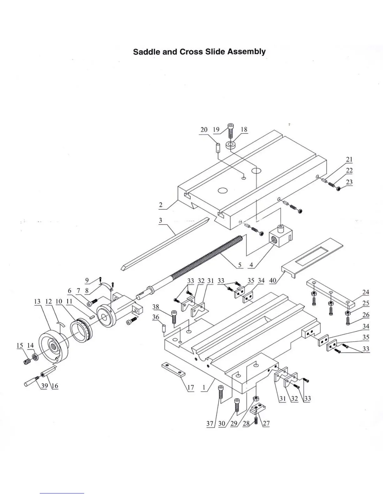 Craftex CT039 - Saddle and Cross Slide Assembly; Exploded View of Saddle and Cross Slide Parts