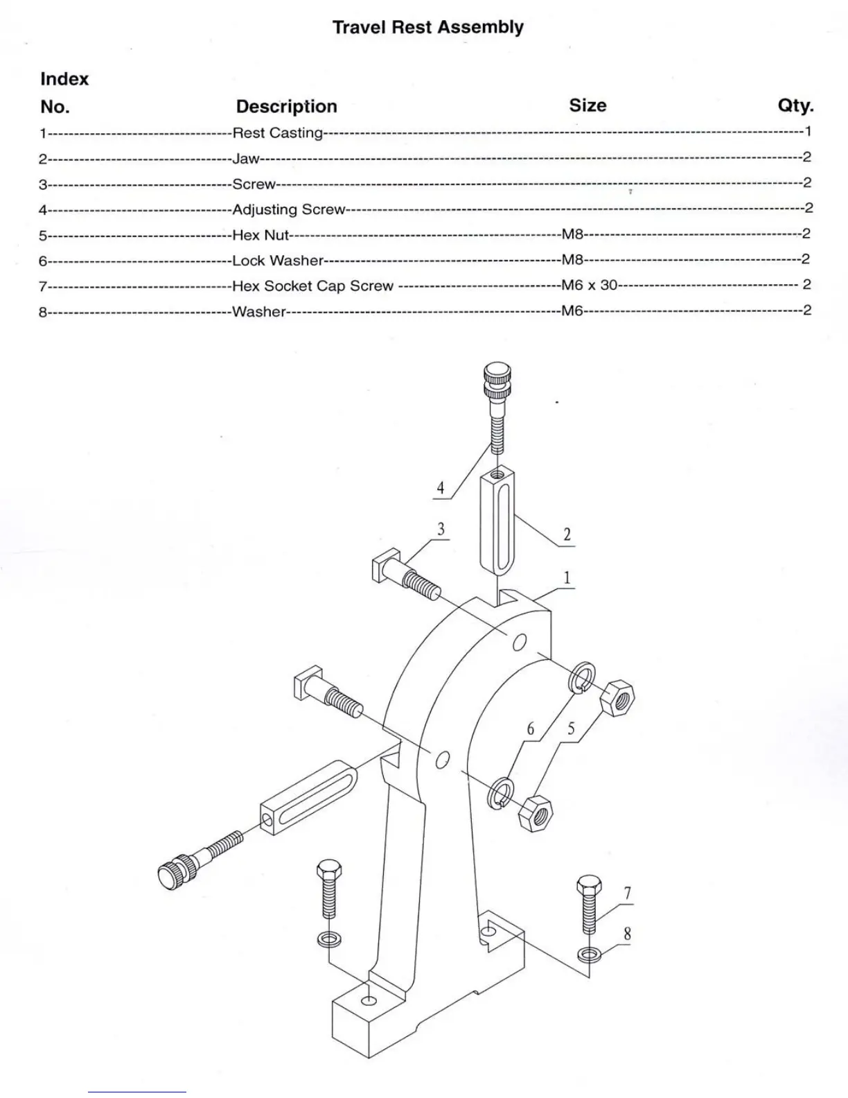 Craftex CT039 - Travel Rest Assembly Diagram; Exploded View of Travel Rest Components
