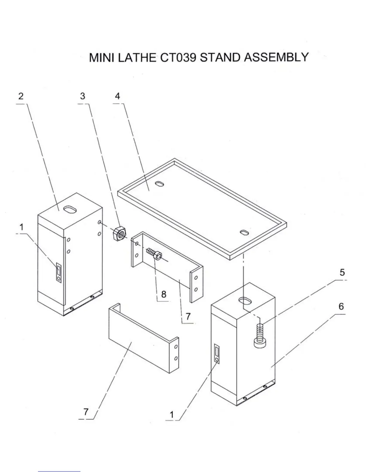 Craftex CT039 - Stand Assembly Diagram; Exploded View of Stand Components