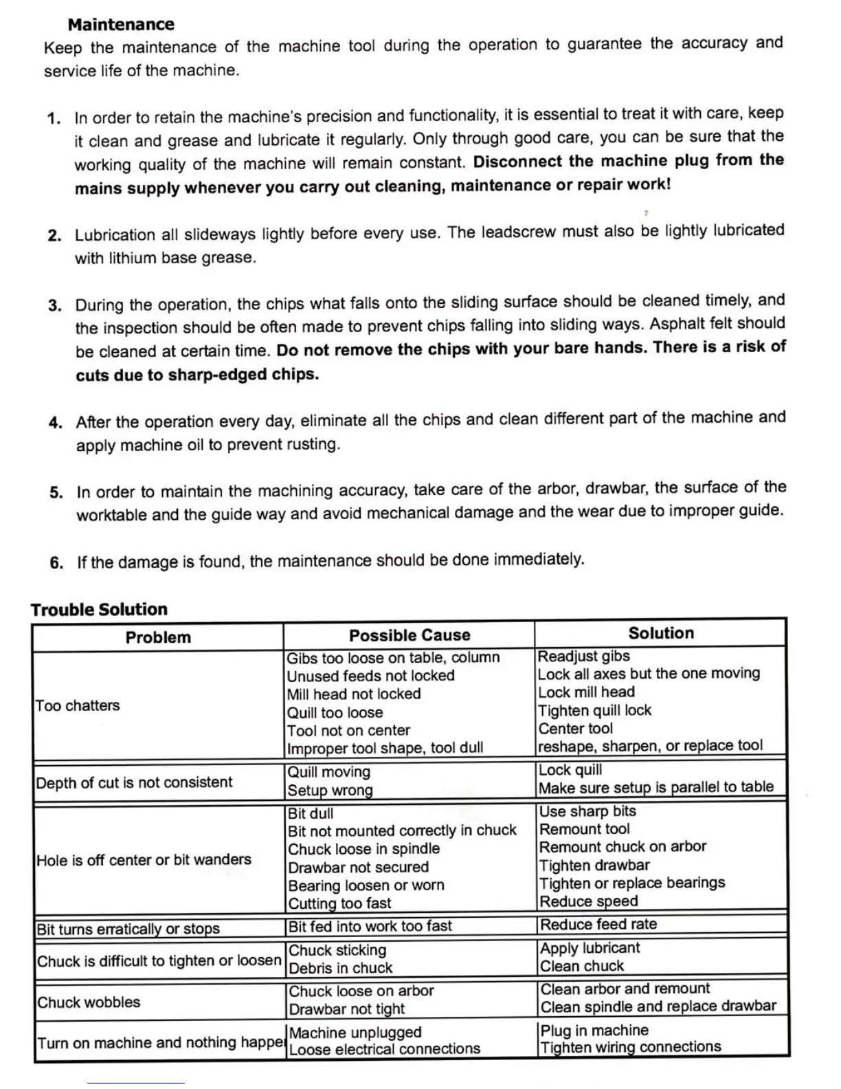Craftex CT129 - Maintenance and Troubleshooting Guide; Routine Maintenance Procedures; Common Troubleshooting Solutions