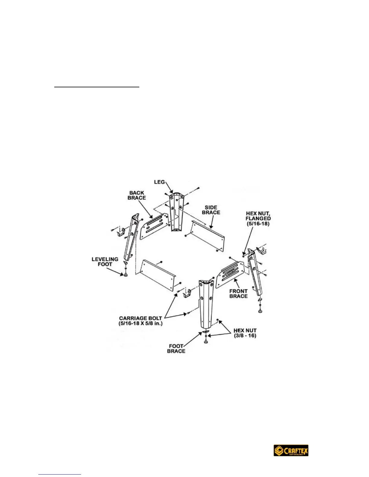 with the front brace. At this time, insert two carriage bolts and hand tighten only