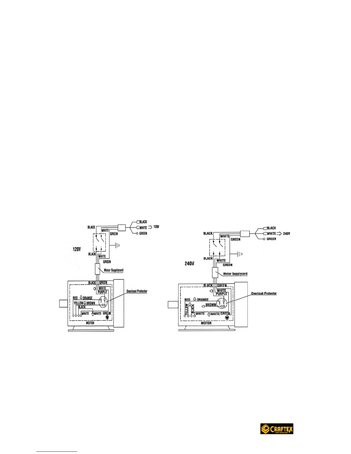 This table saw is pre-wired for 110V, 60 Hz. The following diagrams will help