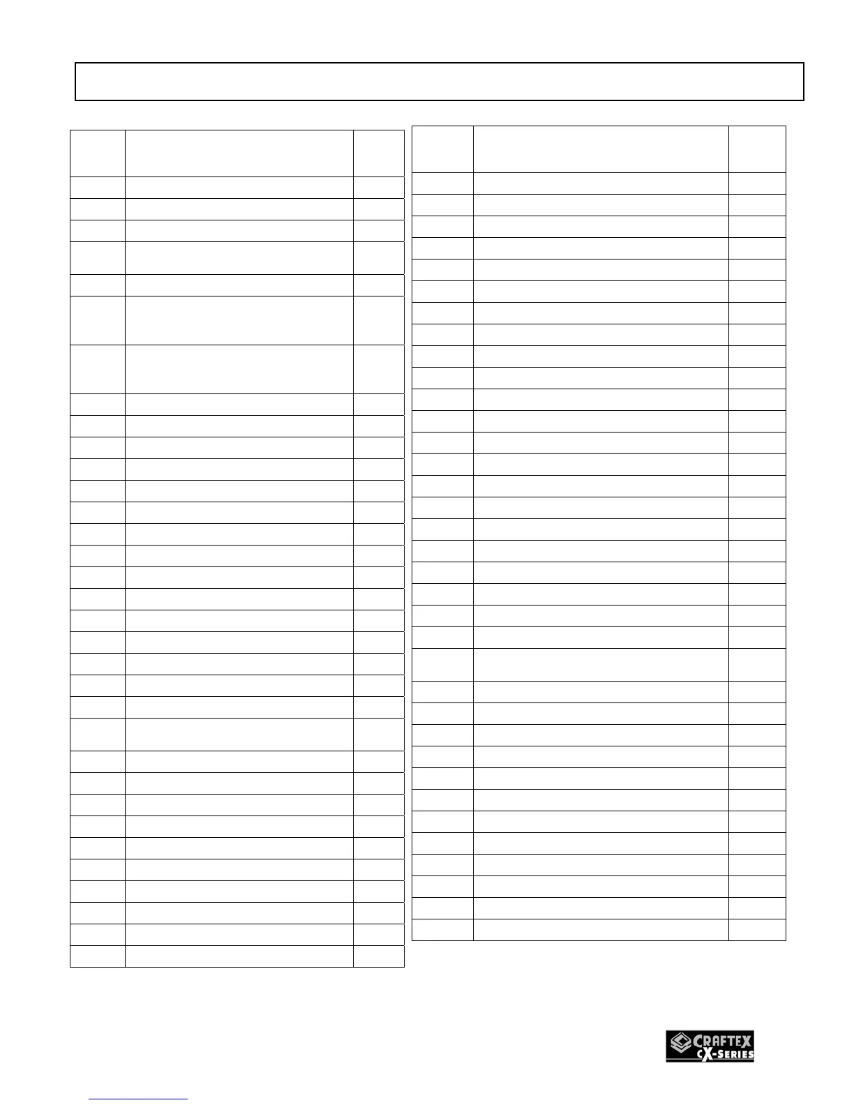 Craftex CX503 - Parts List