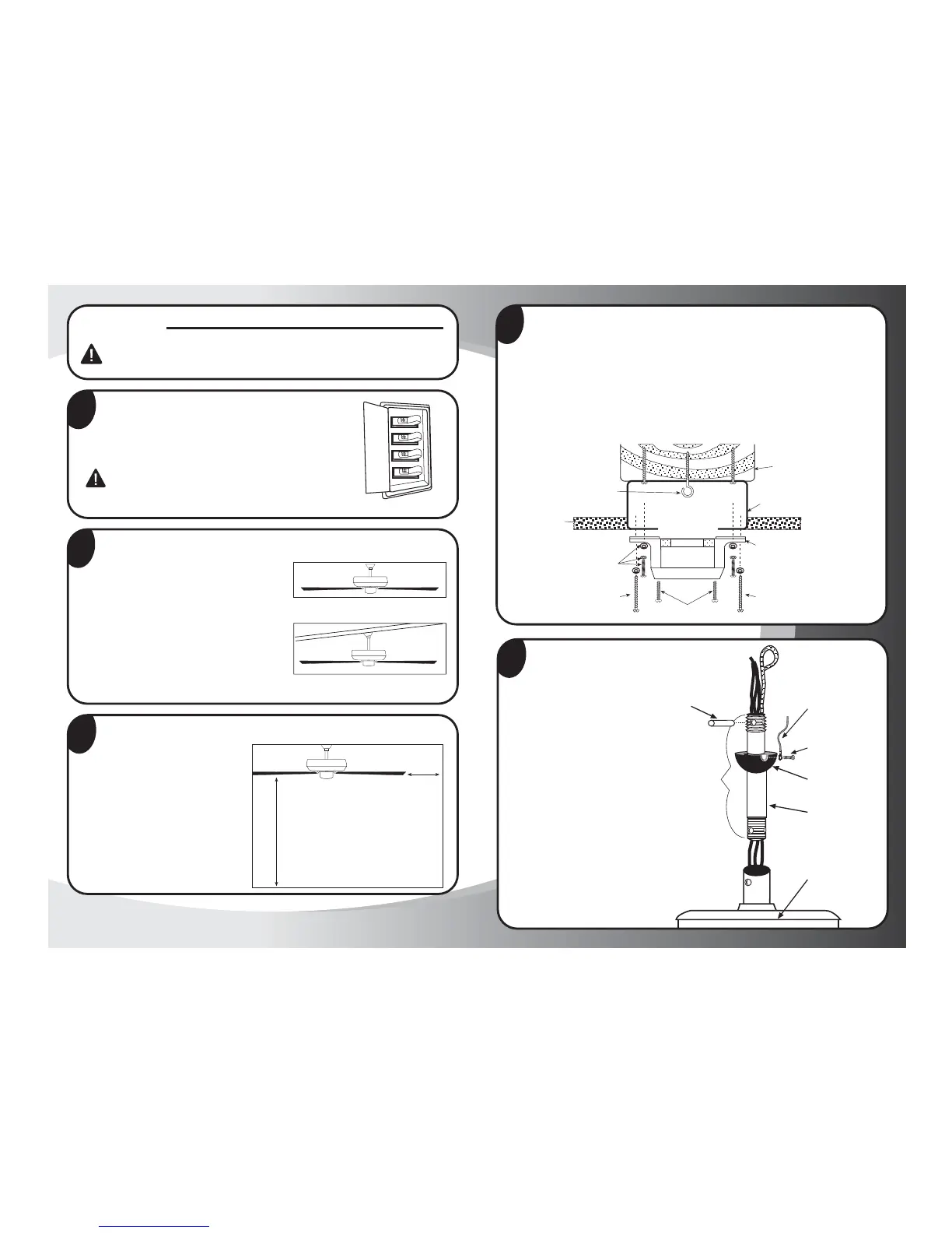 to the building structure and can support the full weight of the fan. Failure to do