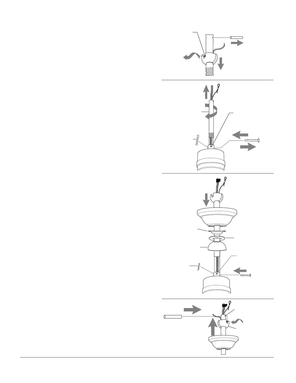 stop pin into top of downrod and raise hanging ball.