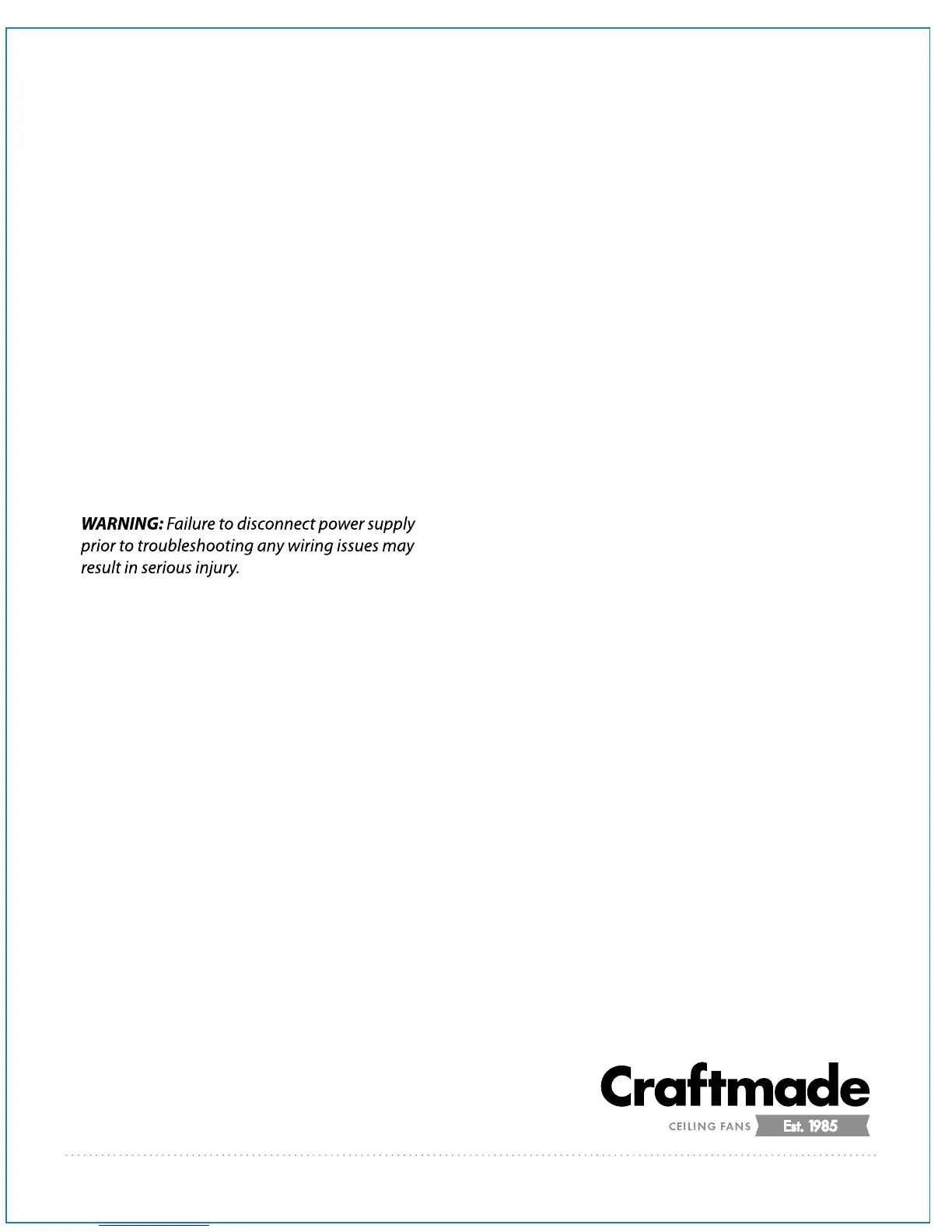 CRAFTMADE/ELLINGTON LIFETIME WARRANTY:
