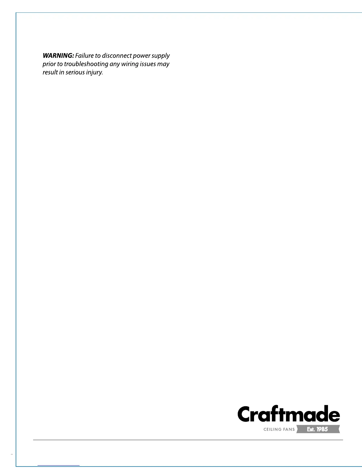 CRAFTMADE/ELLINGTON LIFETIME WARRANTY: