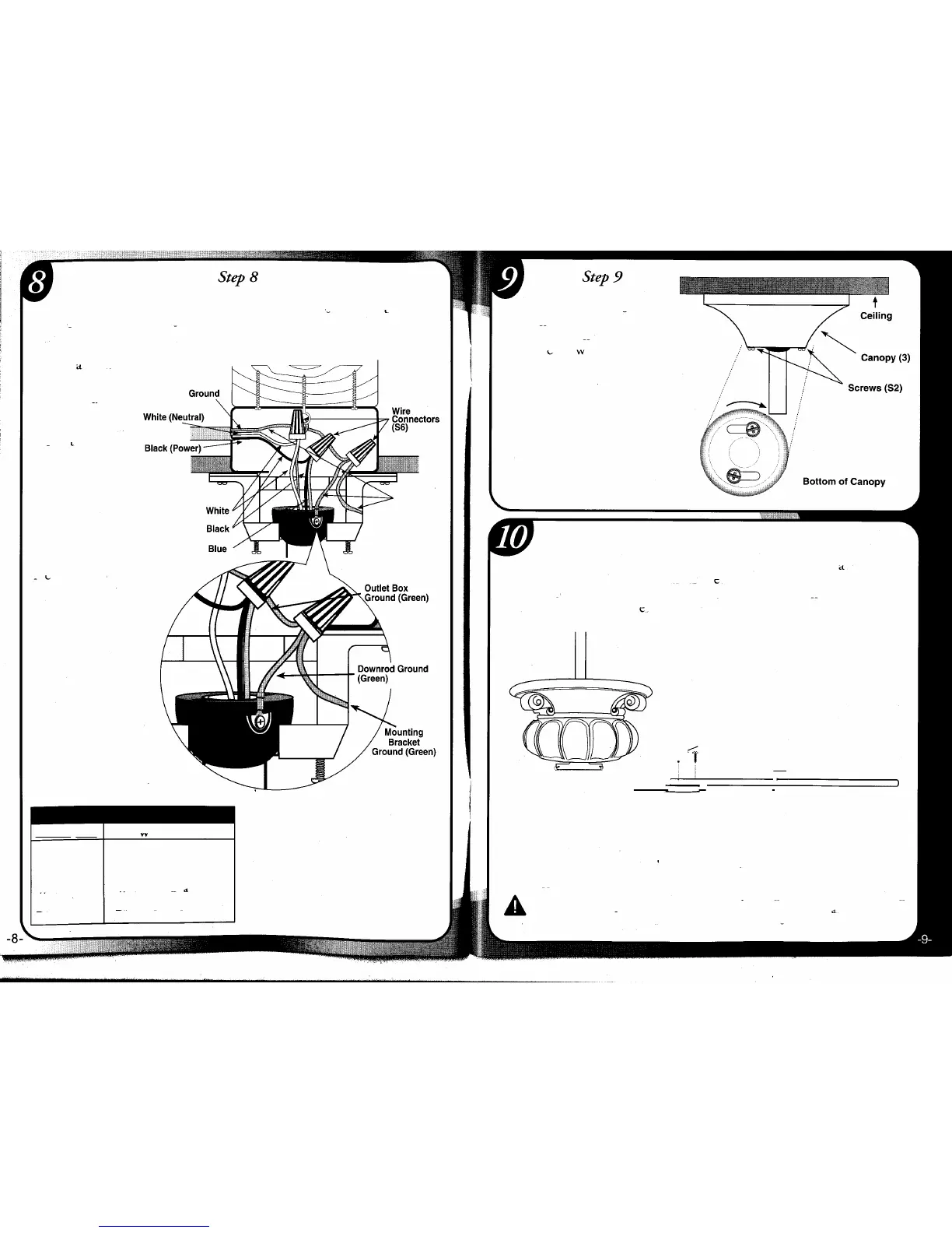 1. Connect fan wires to ceiling wires: white fan wire to white outlet wire,