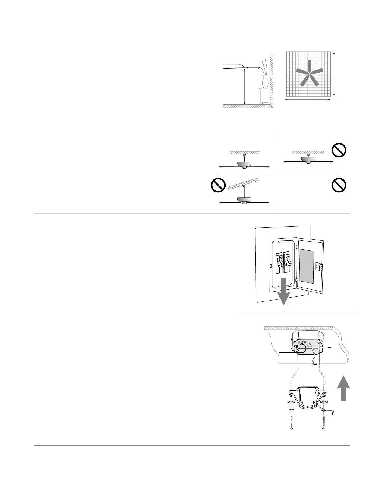 colgar el ventilador al ras con el techo ni en un