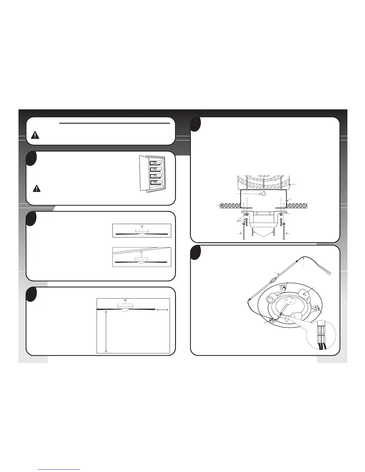 illustrée. Si vous n'installez pas le ventilateur sur une boîte de sortie, utilisez