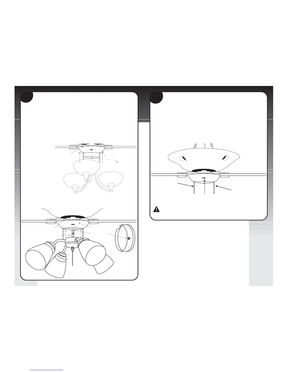 For standard center all thread light kit, remove three screws from side of