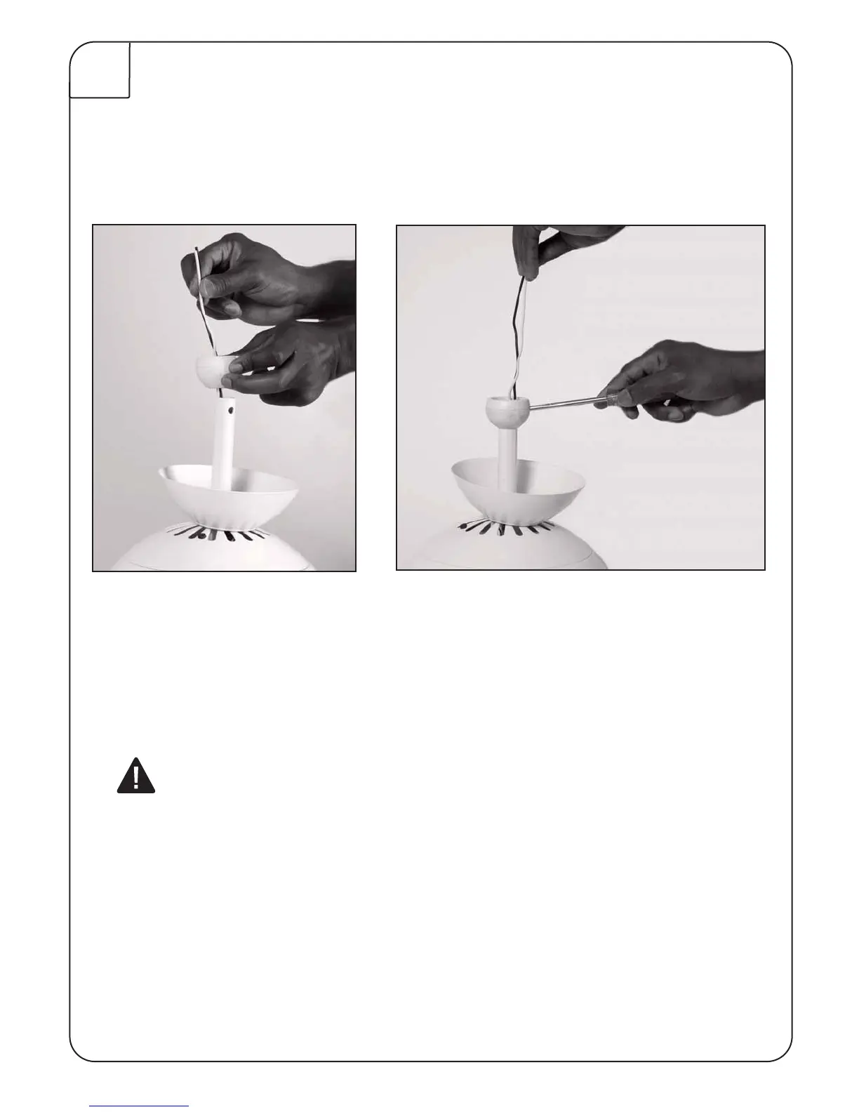 Replace hanging ball, insert hanging pin through downrod and tighten set screw