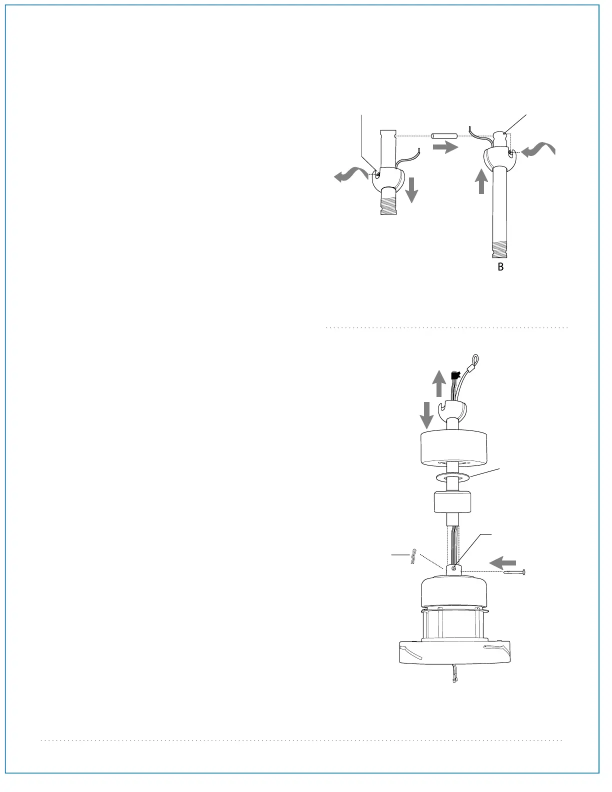 and slide it down the longer downrod, B (the top of