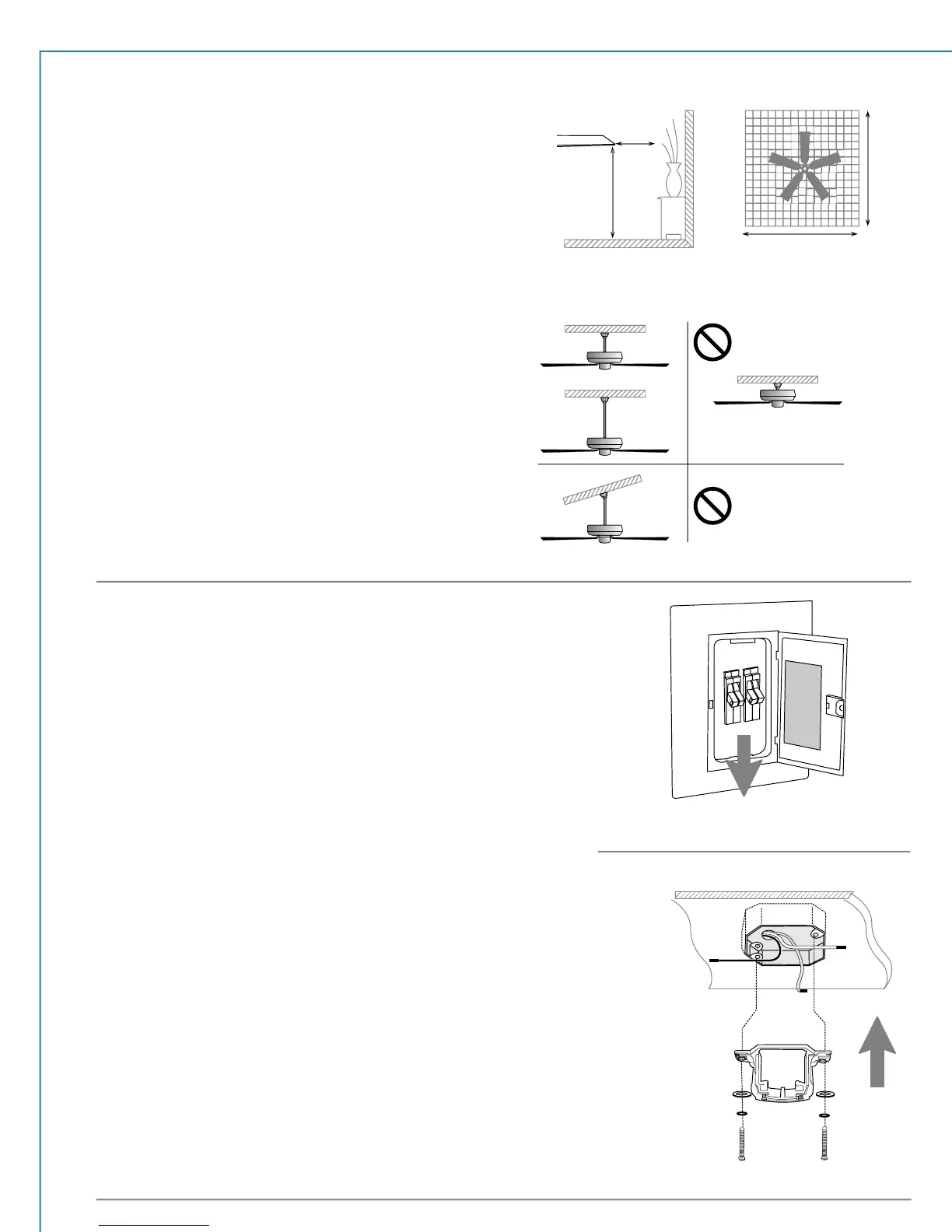 support the full weight of the fan. Ensure outlet box is clearly