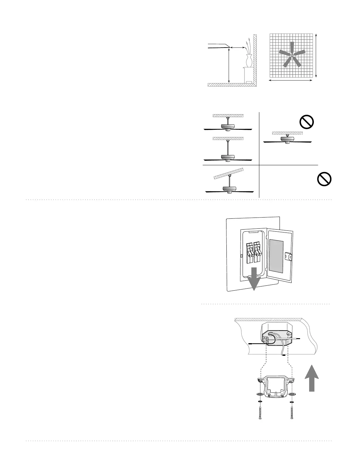 entre las aspas y cualquier pared u otra obstrucción.