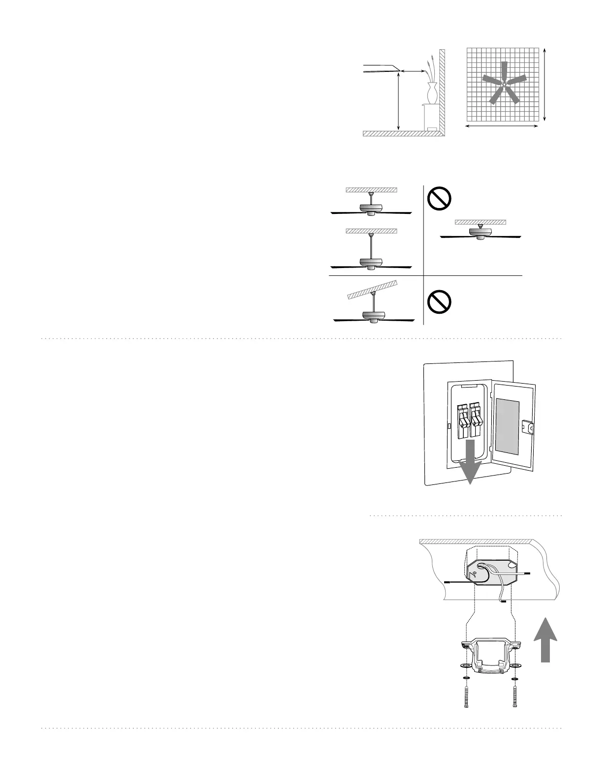 puntas de las aspas y el piso y 76cm (30 pulg.) entre las
