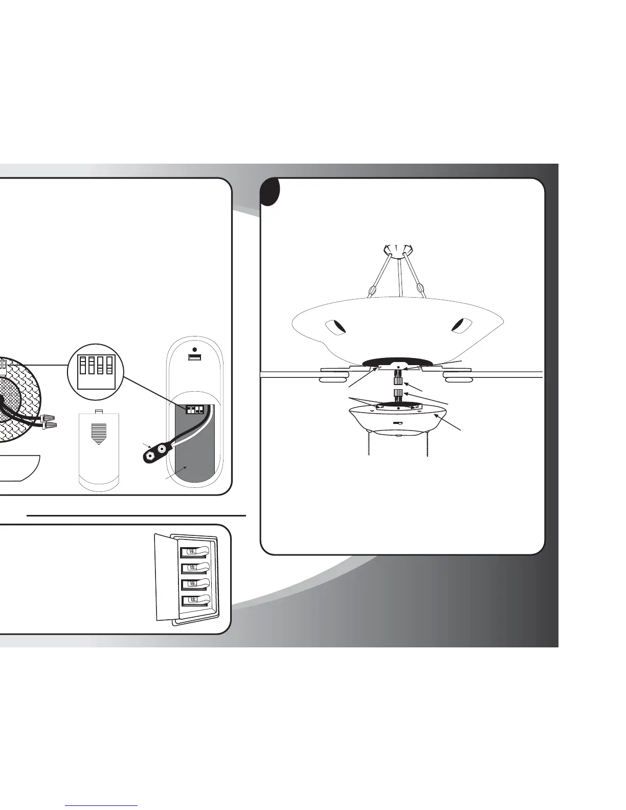 sur le module de réception placé sur le haut du ventilateur (voir schéma).