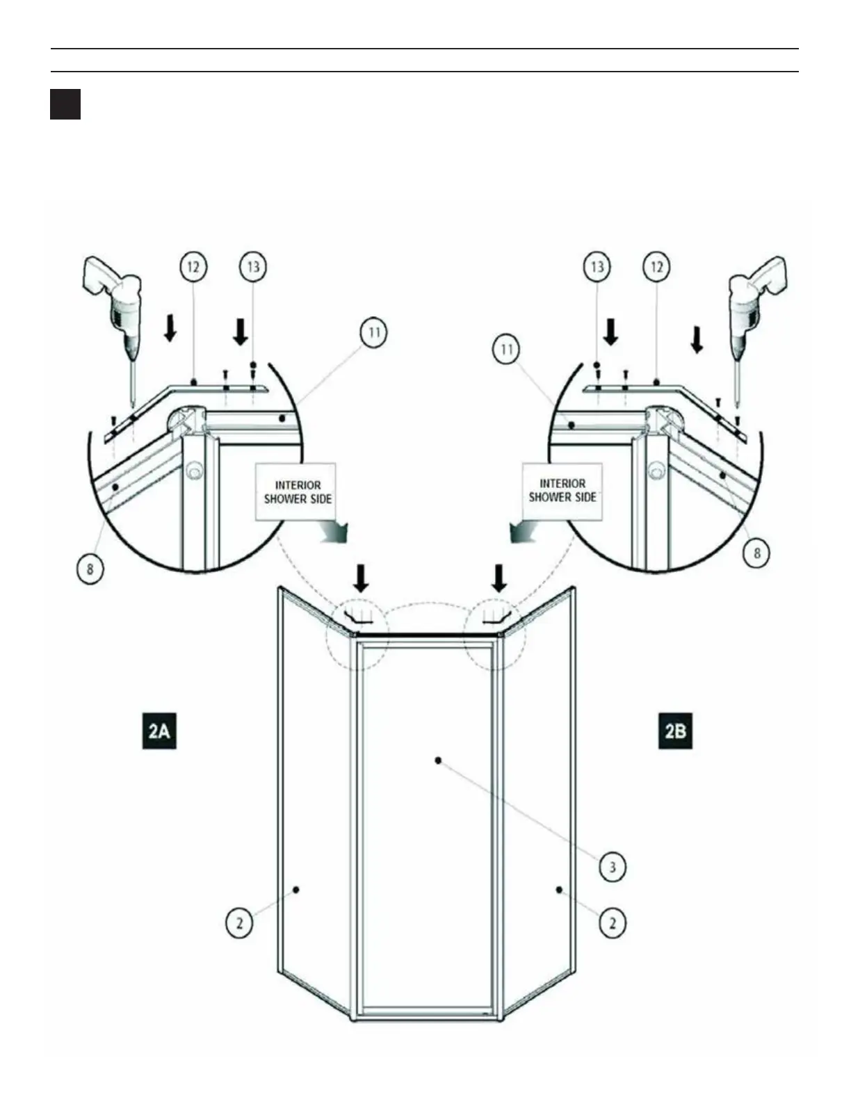 Insert Angle Bracket(12) into top frame of the Side Panel(8) attached to the top Door Frame(11) using Screw(13).