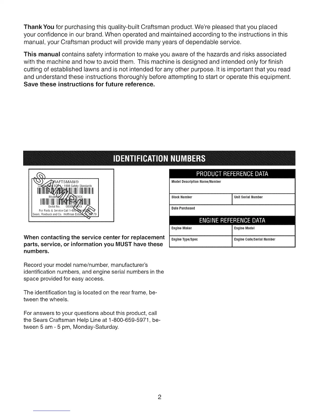 manual, your Craftsman product will provide many years of dependable service.