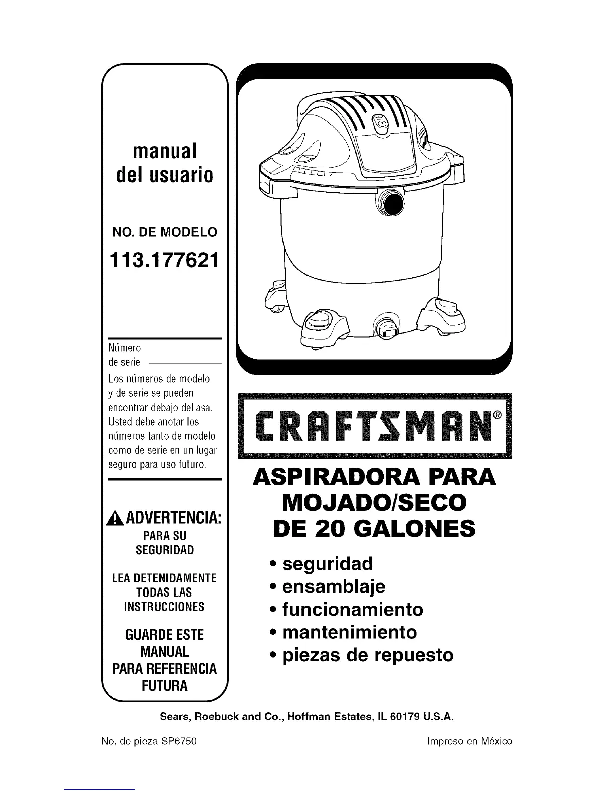 No. de pieza SP6750 Impreso en Mexico