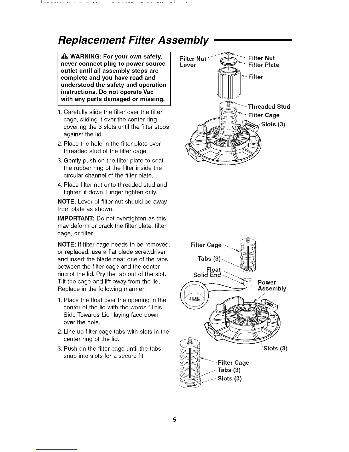 NOTE: If filter cage needs to be removed,