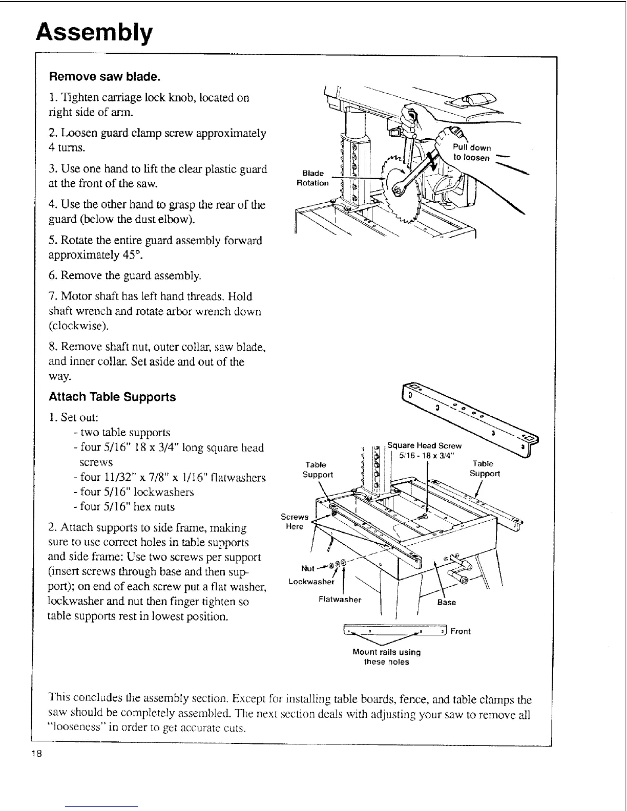 saw should be completely assembled. The next section deals with adjusting your saw to remove 'all