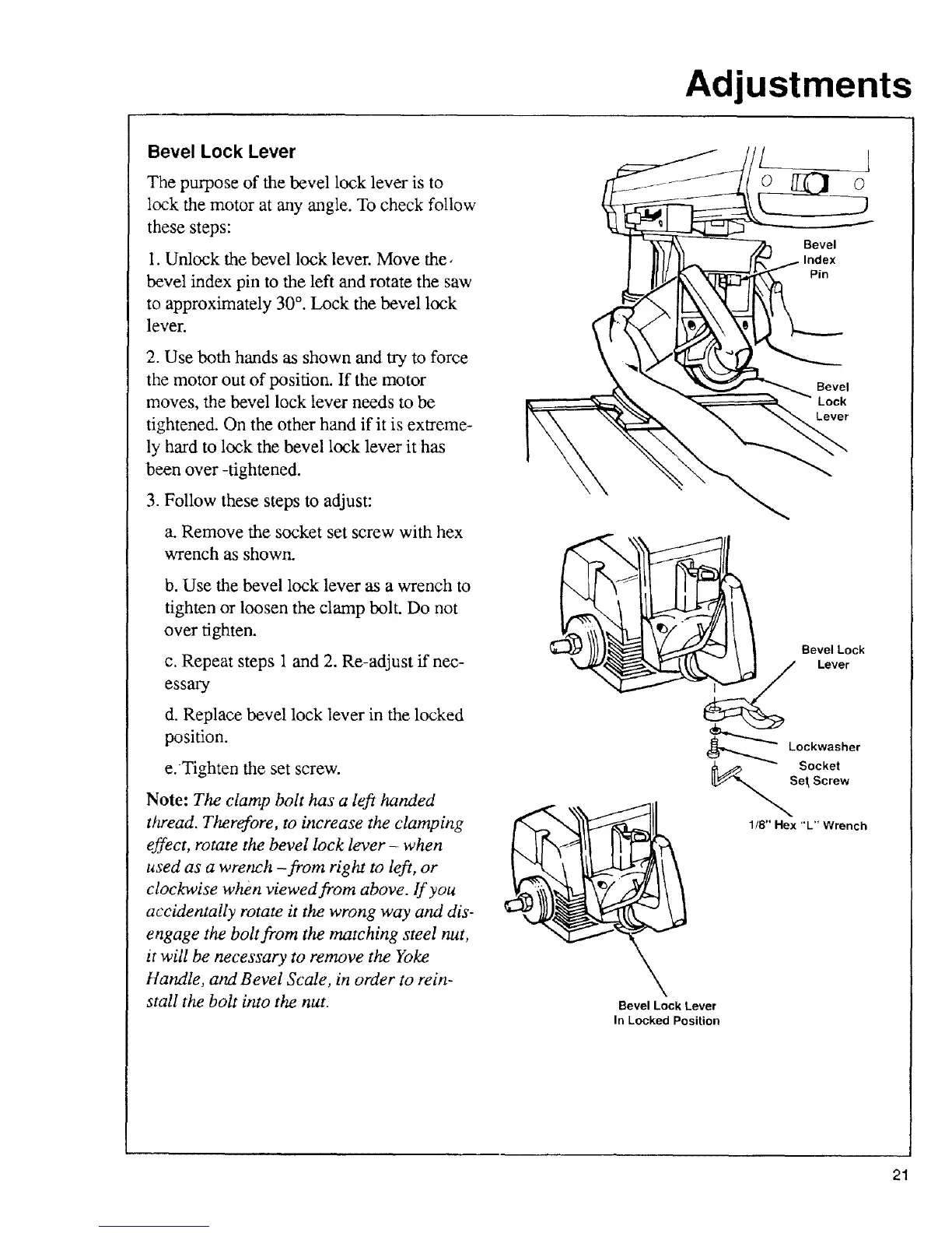 moves, the bevel lock lever needs to be