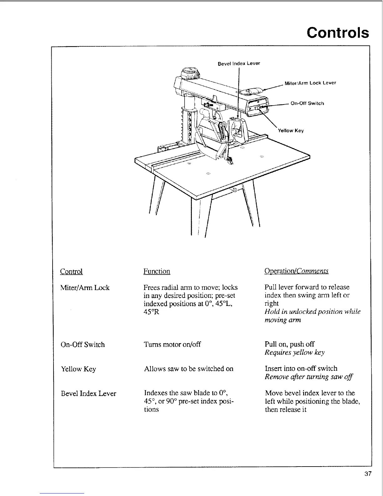 Indexes the saw blade to 0°,