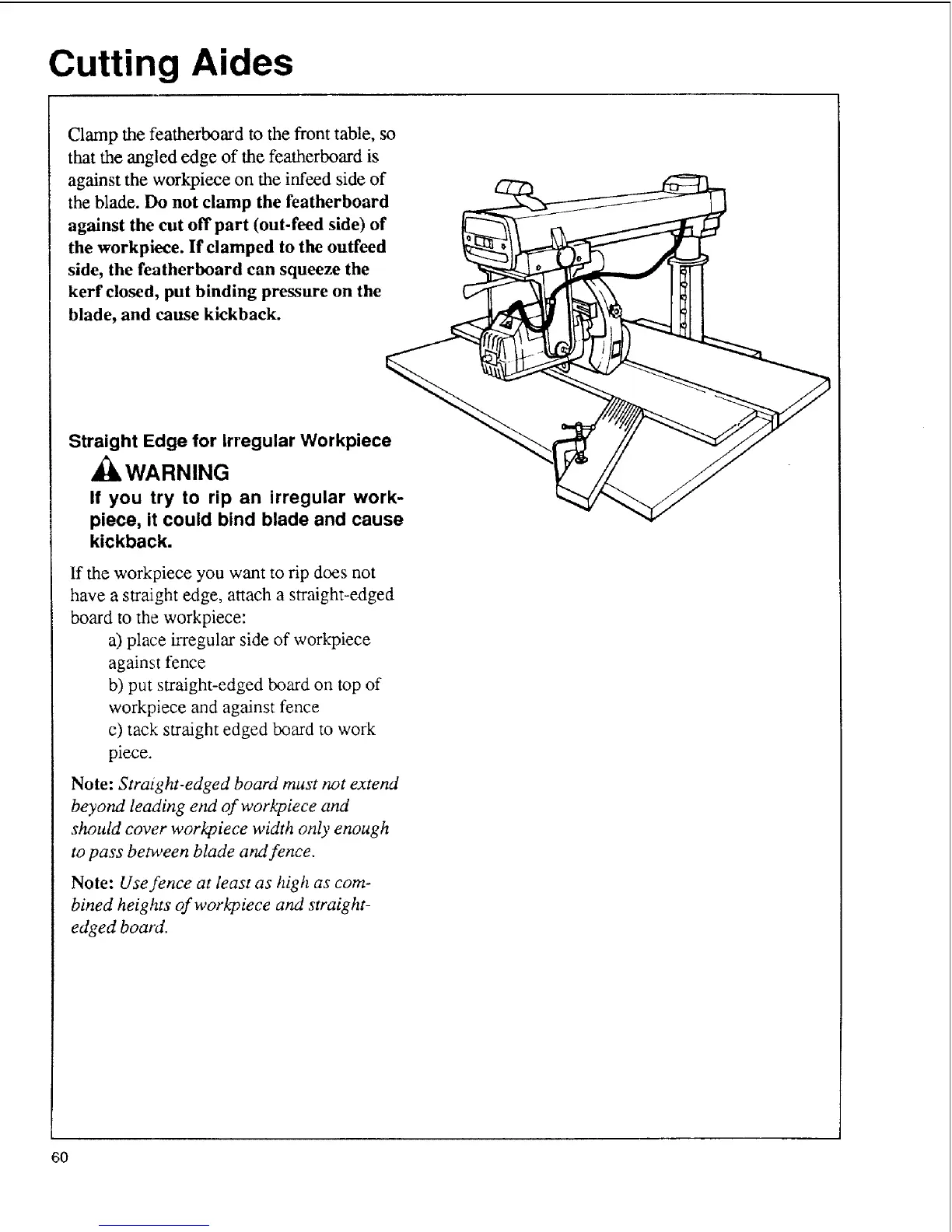 workpiece and against fence